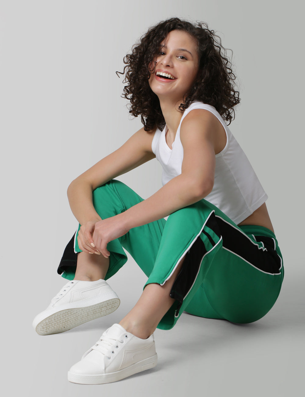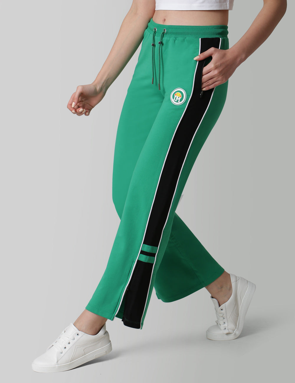 Jogger With Logo Print, Contrasting Side Strap Detailing, Elasticated Waistband, Drawstrings With Metail Trims. Team It Up With Our Matching Crop Logo Tee.