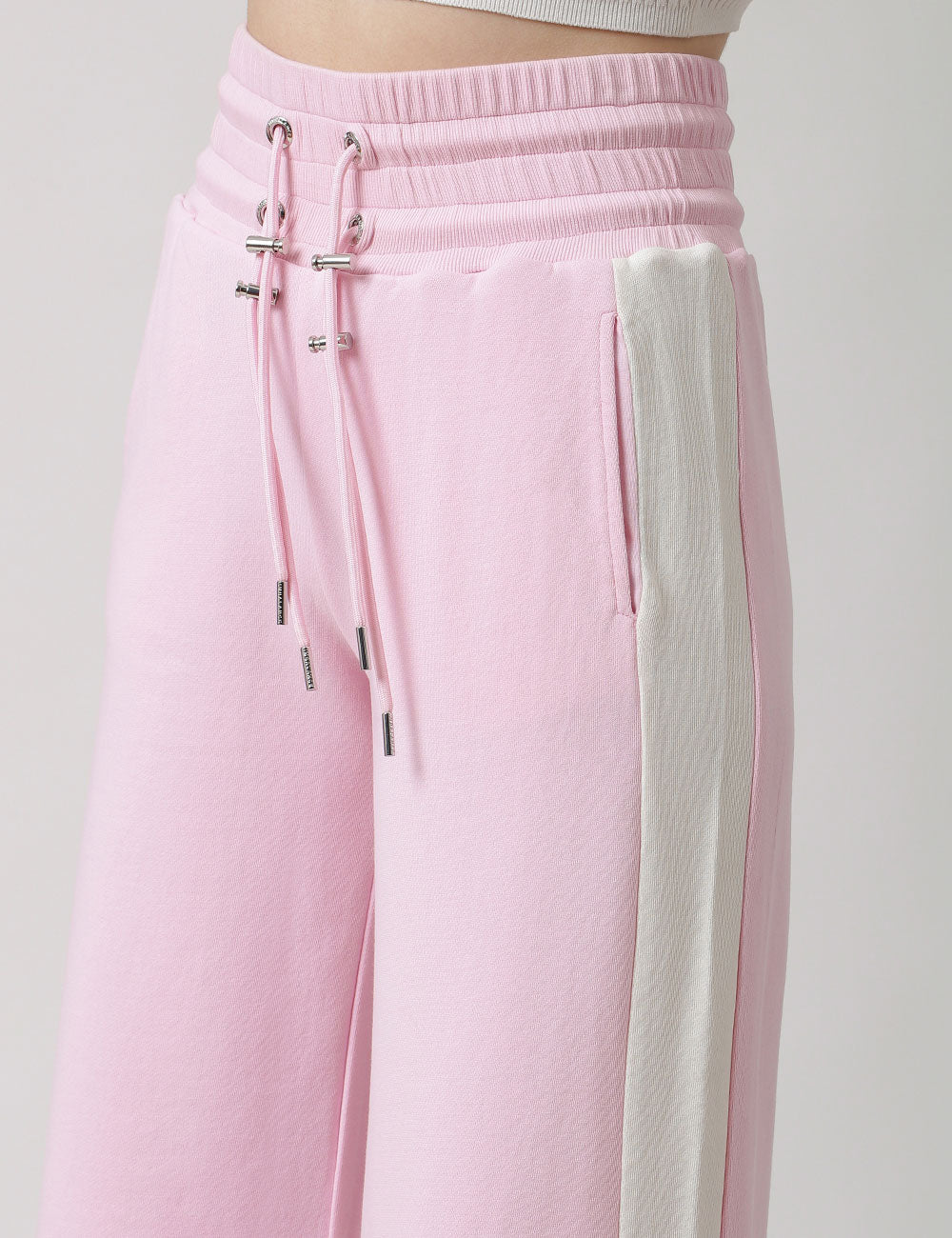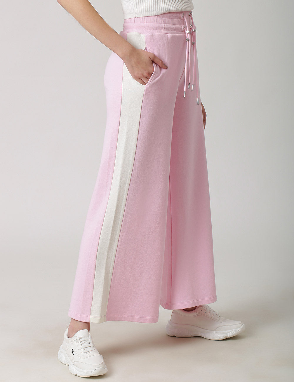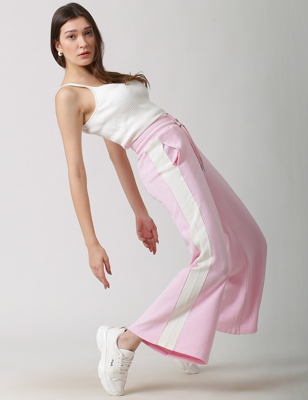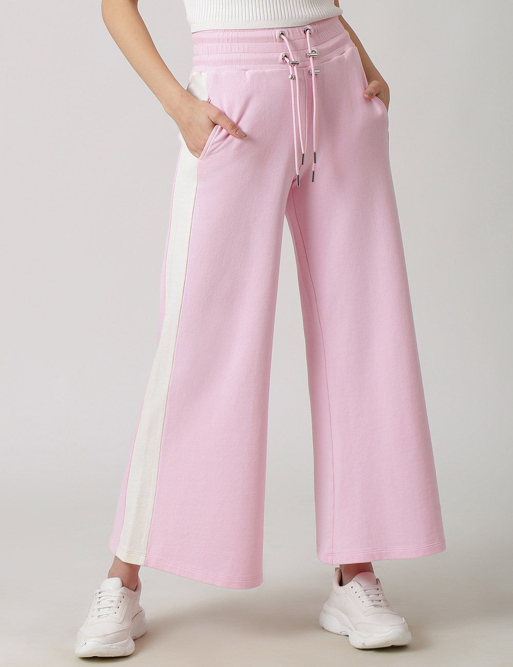 A Pair Of Black Regular Fit Trousers, Has Double Elasticated Waistband With Drawstrings Detailing, Two Side Pockets, Straight Regular Fit. Pair With Tees.