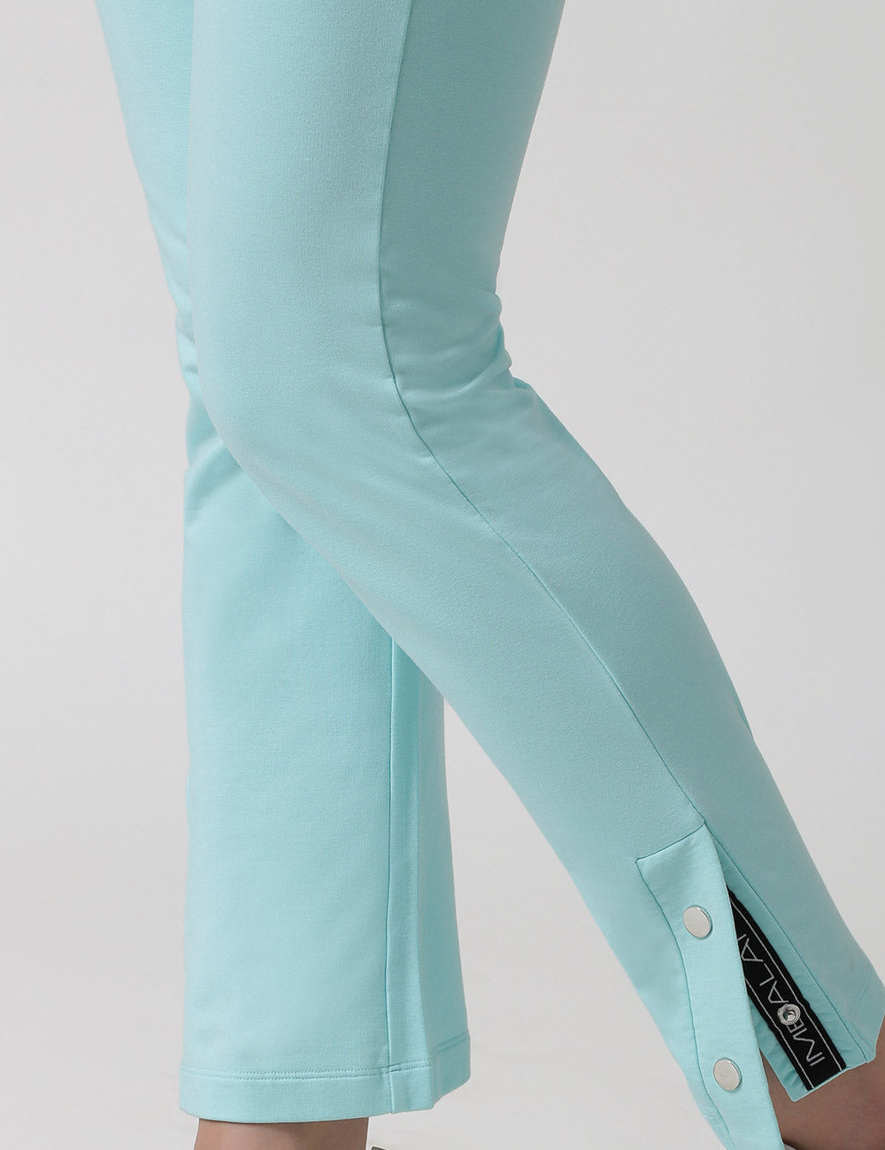 Solid High-Rise Pants For Women, Comes With An Elasticated Waistband, Snap Button Flap At The Hem, Two Pockets, Flare Hem. Style It With A Fitted Top Or Oversized Hoodie.