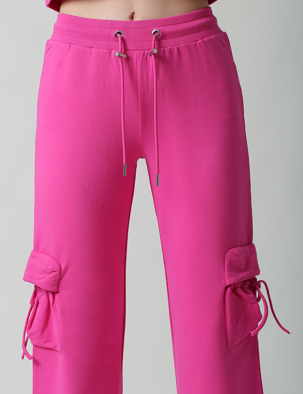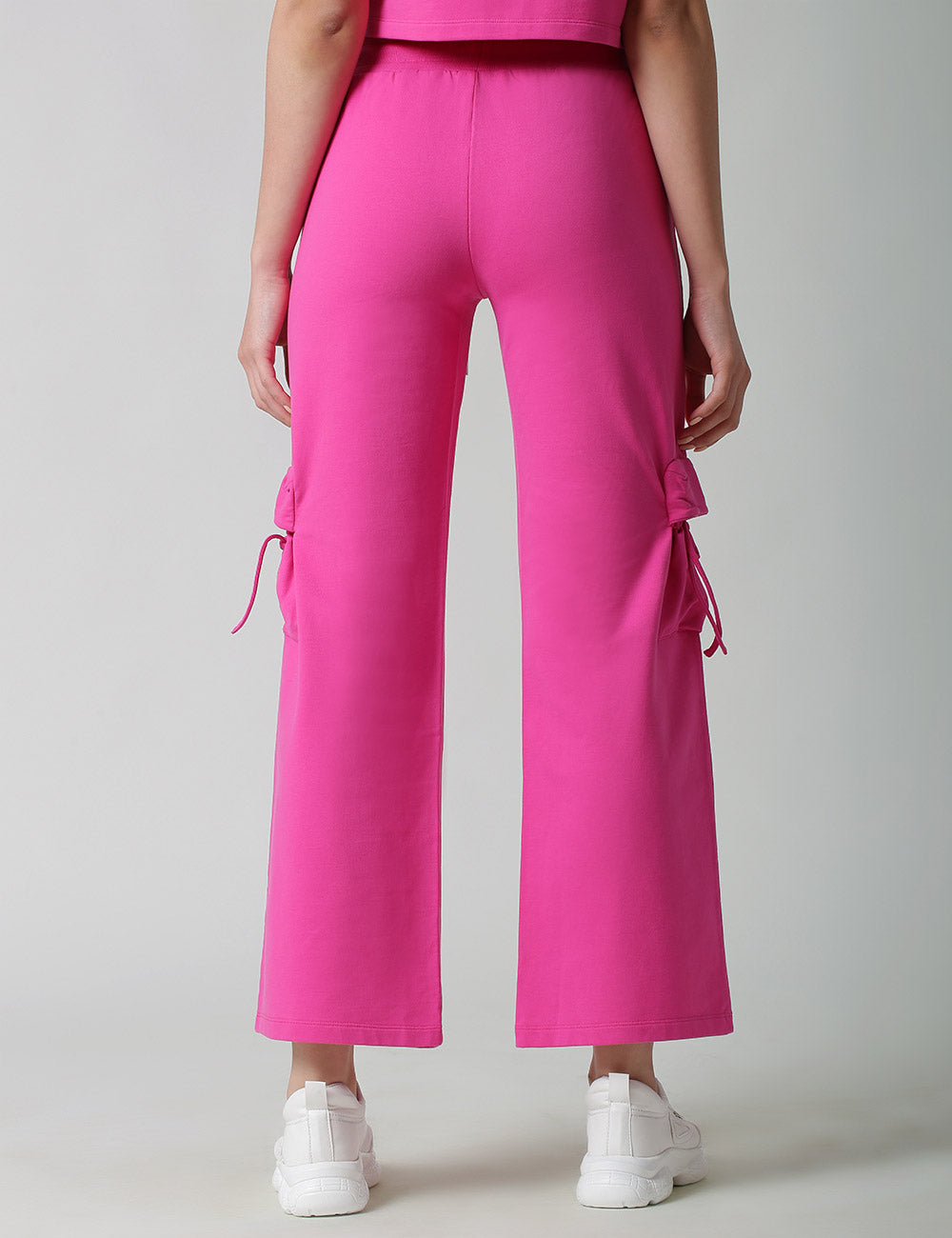 Solid High-Rise Pants For Women, Comes With An Elasticated Waistband With Drawstring Closure, Shiny Metal Trims,Two Baggy Side Pockets, Flare Hem. Style It With A Fitted Crop Top.